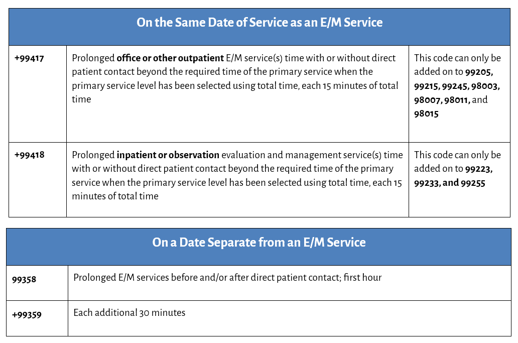 Coding Tip: Codes for Prolonged service time on a separate date from the E/M apply to the CPT midpoint rule; 99358 is reportable at 31 minutes. And 99359 is reportable at 68 minutes.