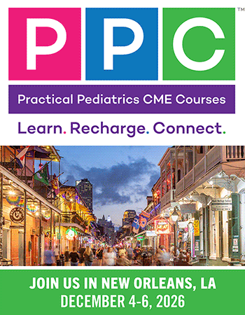 Designed for pediatricians, family physicians, nurse practitioners and physician assistants caring for children, Practical Pediatrics CME Courses feature nationally prominent faculty presenting topics that highlight current issues in pediatrics. Each course combines lectures, interactive seminars, and question-and-answer sessions to allow you the opportunity to interact directly with faculty in solving the problems you encounter in everyday clinical settings.