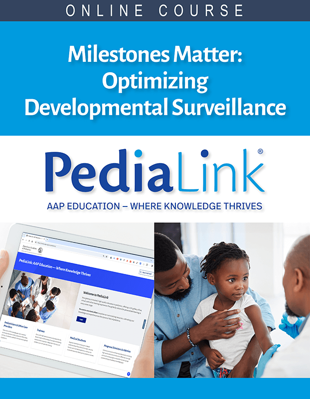 This course will provide an overview of developmental surveillance and address gaps in knowledge and performance that exist among pediatric clinicians related to routinely conducting developmental surveillance at each health supervision visit. The content will provide an overview of AAPs clinical report for incorporating developmental surveillance in the practice setting and how surveillance and screening support each other in early identification of children at risk for developmental delays and disabilities. Topics covered will include strategies for incorporating the components of surveillance into a practice workflow, ways to partner and communicate with families about developmental milestones and identifying concerns, and how to utilize a team-based approach to implement developmental surveillance.