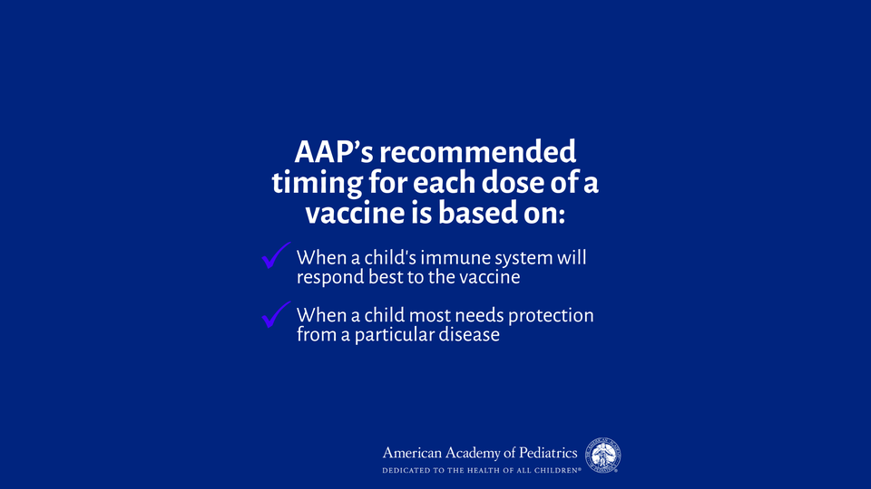 Suggested post: The AAP’s recommended pacing of childhood vaccines considers when children are most likely to be exposed to contagious diseases and when children’s immune systems will respond best. This timing has kept millions of kids healthy, so they can focus on growing, playing, and learning.