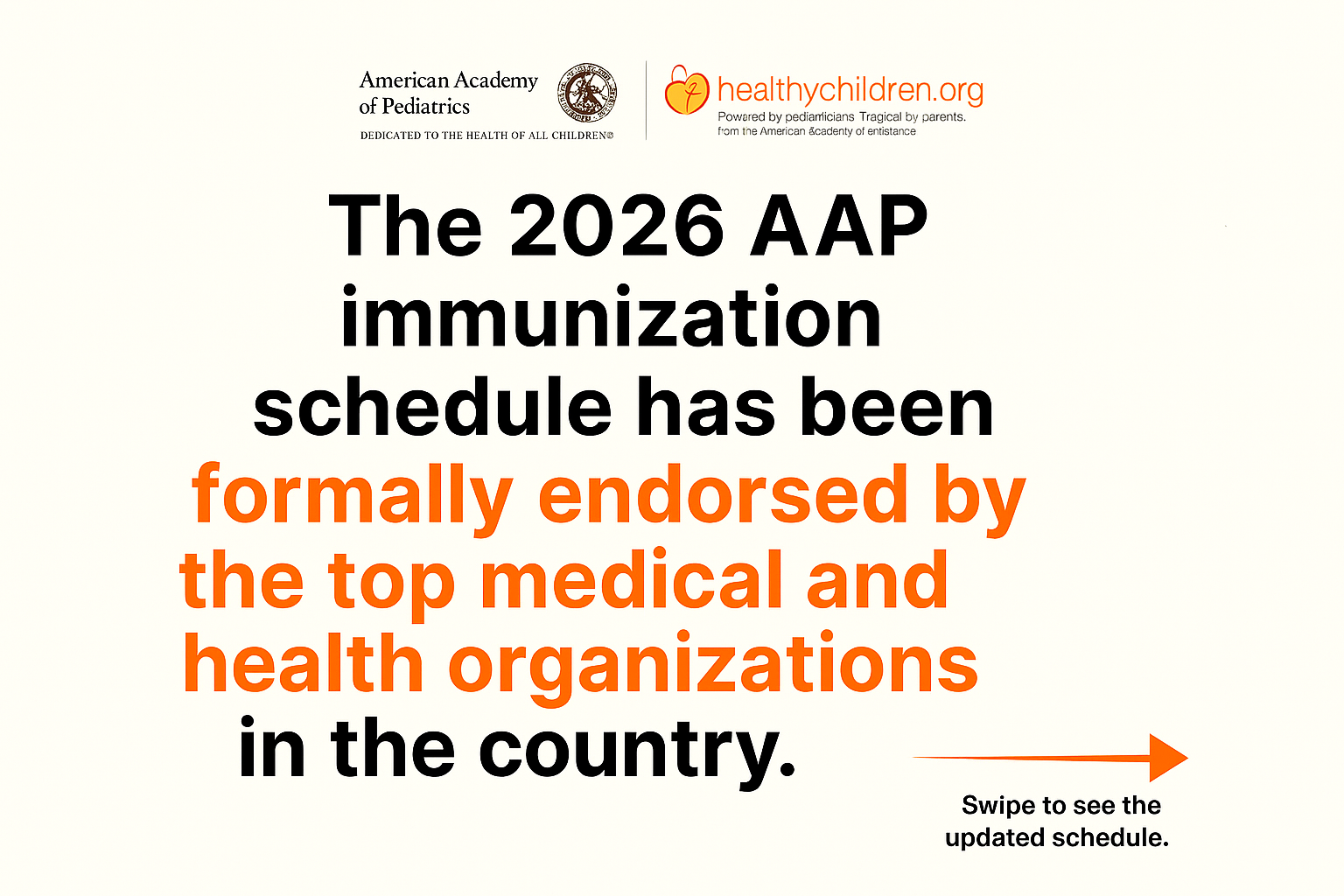 - The AAP immunization schedule is endorsed by 12 medical and health organizations representing more than 1 million clinicians, physicians, pharmacists and other pediatric health care professionals.