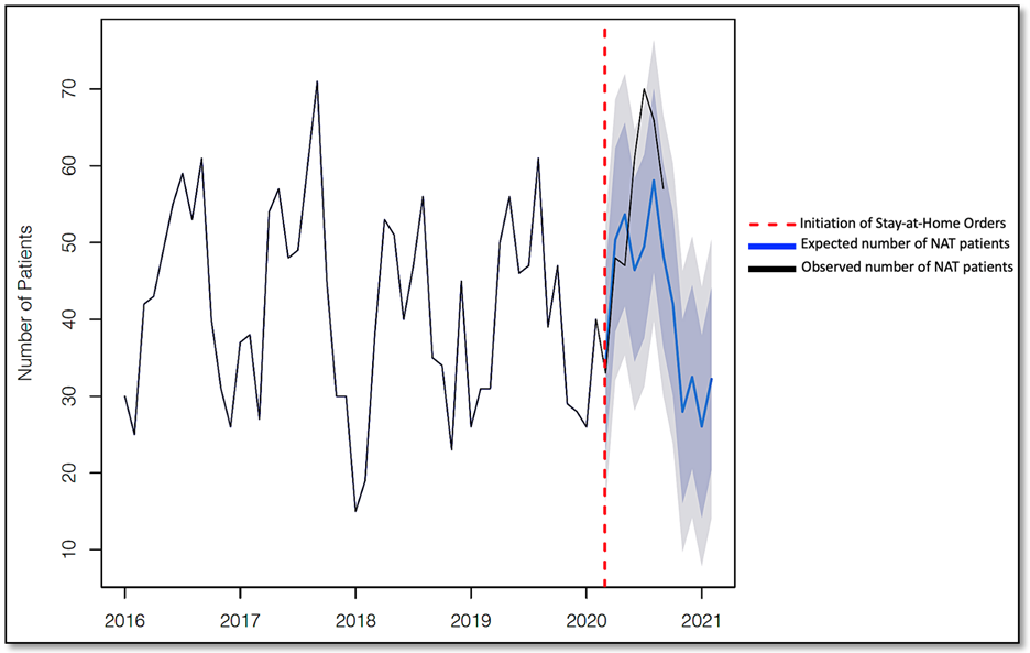 Interrupted Time Series Analysis for NAT during Stay-at-Home Orders