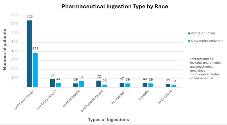 Pharmaceutical ingestions classified by race (Non-white children vs White Children)