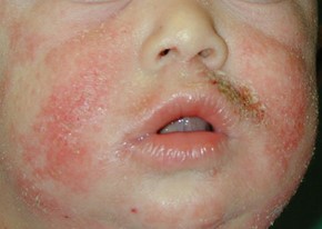 A low-potency topical corticosteroid (eg, hydrocortisone 1% or 2.5%), applied twice daily as needed, is indicated for the management of flares of atopic dermatitis in infants. It is also recommended for treatment of atopic dermatitis on the face in patients of any age. Ointment vehicles are preferred because they tend to be more effective, although some families prefer creams because they are less greasy. Once the erythematous patches resolve (usually within a few days to 2 weeks), the topical corticosteroid may be withdrawn and daily skin care measures continued.