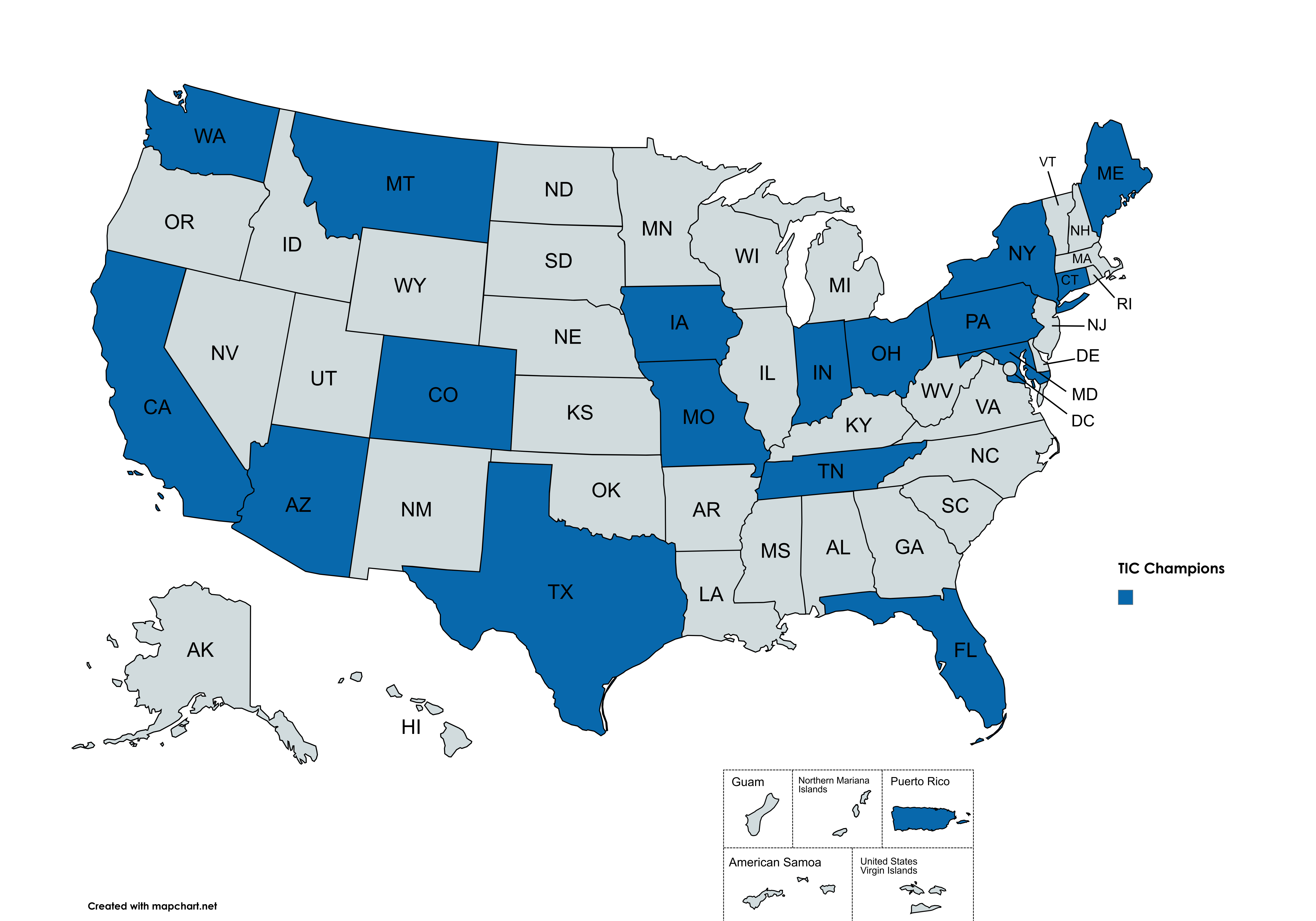 Currently, there are 25 TIC Champions participating in the TIC Champion Program as part of the National Center for Relational Health and Trauma-Informed Care.
