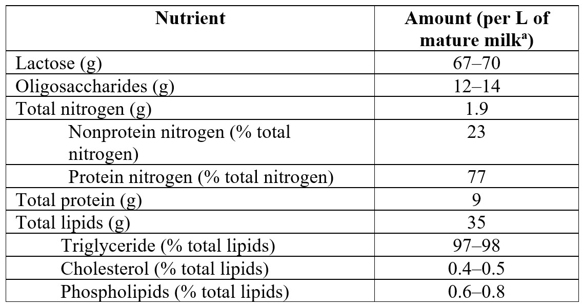 a Mature milk = after 2 weeks’ lactation.