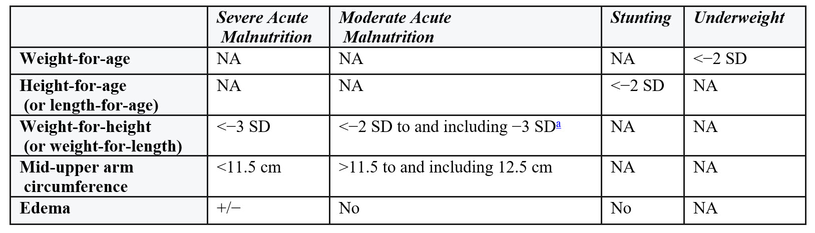 Diagnostic Criteria (Z-Scores) for Undernutrition
