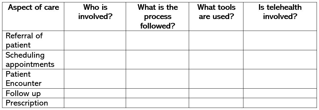 - What tools are used (i.e., electronic medical record system, diagnostic tools, laboratory systems, communication tools, etc.)?