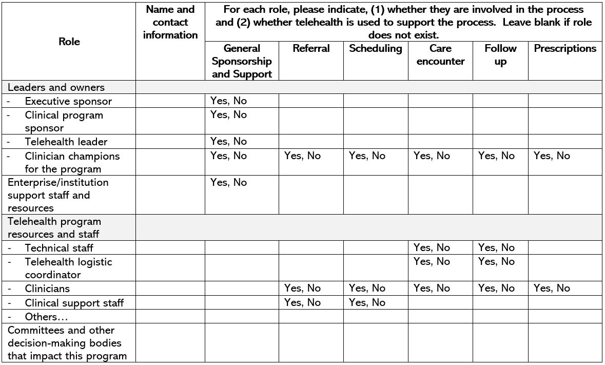 Know your team. Understand each team member’s role in delivering telehealth (refer to your team role sample table).