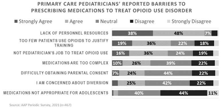 Objective: Examine primary care pediatricians’ perceptions, preparedness, and practices related to treating adolescent OUD, and barriers to medication use.