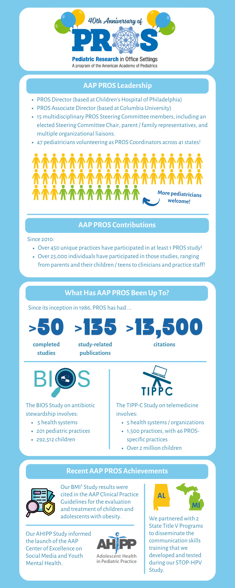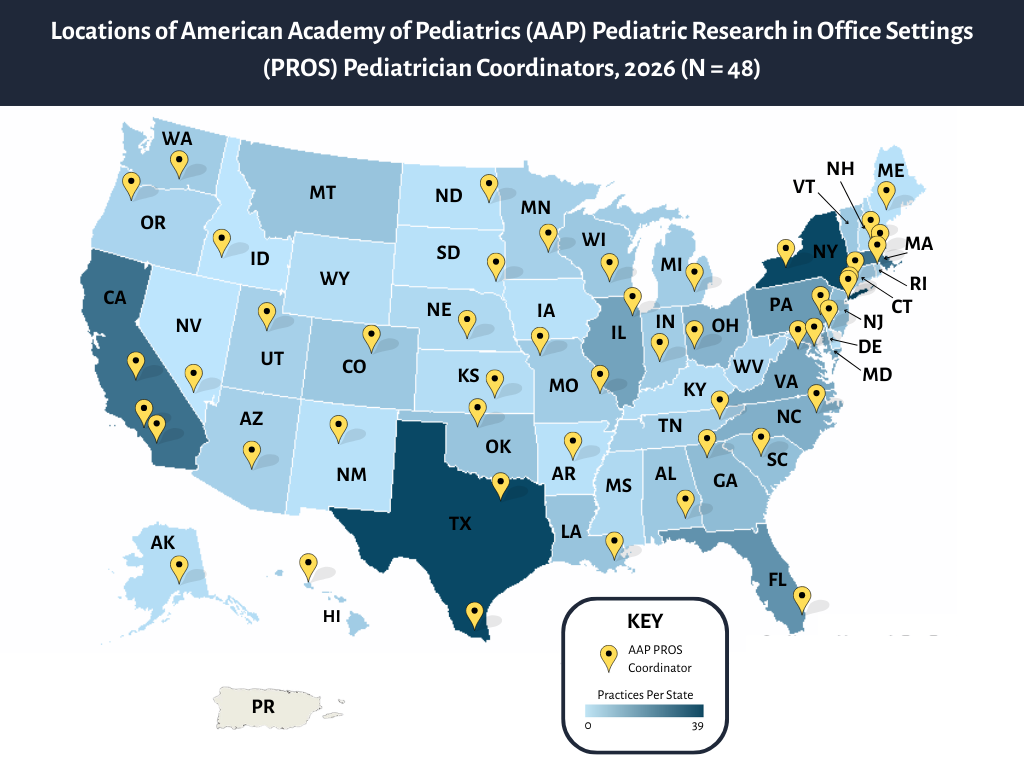 (PROS) is a primary care practice-based research network (PBRN) of the American Academy of Pediatrics. Our mission is to improve the health of children and enhance pediatric primary care practice by conducting and fostering national collaborative practice-based research.